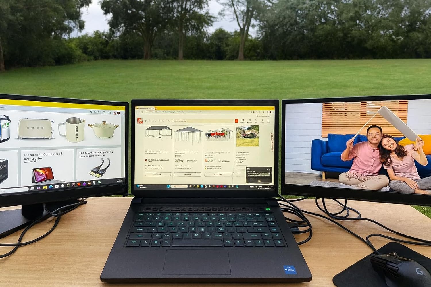 I bought this triple monitor to turn my laptop into a multi-monitor setup, and I really like this product. It meets the expectations I had when I bought it; it's very practical. It's a little heavy, but it seems sturdy and durable enough for me to work with.